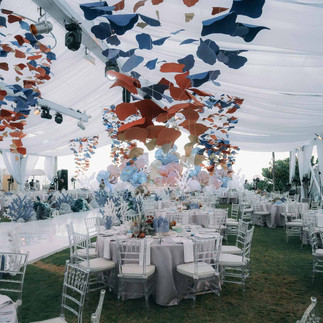 In this design, the couple’s passion for diving is transformed into a celebration that captures the surreal beauty of the ocean.